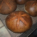 My small loafs bake for 30 to 35 minutes and then they get taken out. The large breads stay inside for 60 minutes or longer up to one hour plus 5 or even 10 minutes extra (up to 70 minutes baking). Basically till I can see that the breads are quite dark, just like the color of David’s breads on this page.
