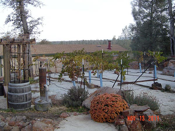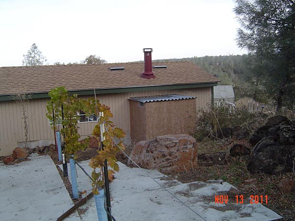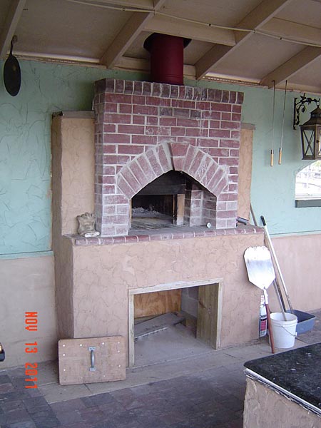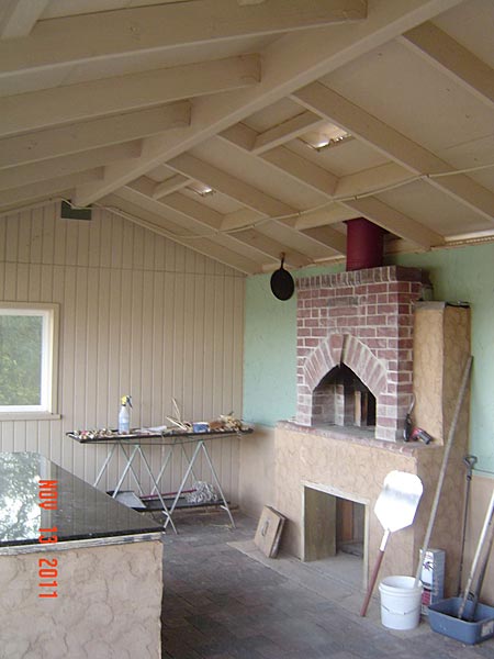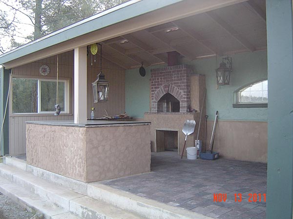 I finished the stucco and the flooring. Back image shows rear of the oven in the vineyard with carpeting to help stop the weeds plus its free. And 12 inches of oven protruding past the wall to the in-side.