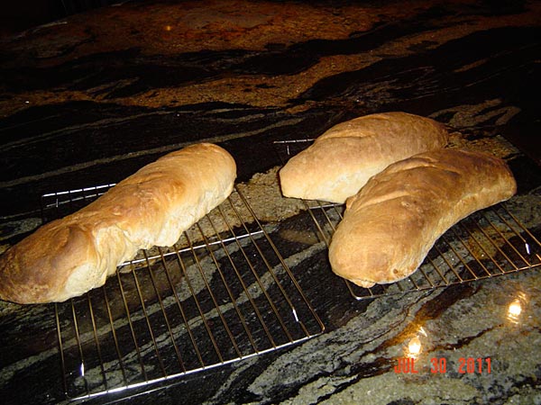 Attached are a few photos of the first French bread we made. The shape took on a form of its own but playing with the oven is all part of the fun. Everyone that eats the food from our wood-burning oven loves the food. The pizzas have that crispy crunch with a wonderful toasty flavor; the bread has the hard crust like the old European style but remains soft and light inside. Our friends, soccer teams family like the party atmosphere that is created as everyone rolls out their own dough and tops there own pizza as a group, its amazing the shapes that some of the kids come up with! Cooking the pizzas only takes 90 seconds, which allows the transformation from making to eating very quick and enjoyable. Our future plans on pizza night will be to have friends make and bring their own bread dough with them; we will launch the bread after eating the pizza as a loaf only takes ten minutes to cook in the wood burning oven. Them each person will trade loafs for fun.