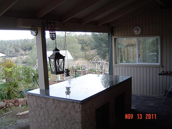 I covered the top of the oven with corrugated metal roofing and also final finished the flooring around the wood burning oven.