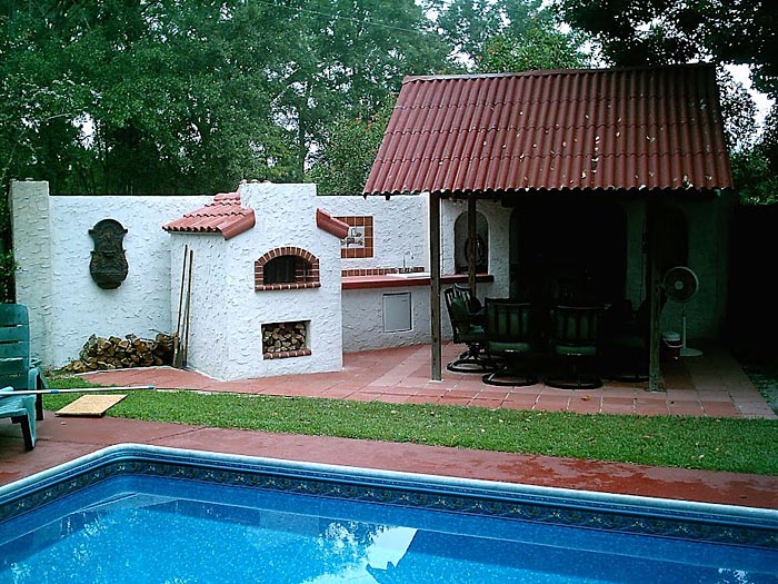 I built my oven using the plans you emailed me the links for and it turned out great, works great and family absolutely loves the pizza etc. The outside walls are made from cinder blocks and then I applied stucco at the end to achieve this final effect. We really enjoy the oven thanks again for the plans.