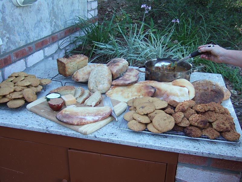 Our second baking, various breads, biscuits, cakes, including a pot of thick veggie soup.