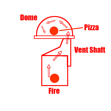 This is a diagram how I went about -it shows how the heat from the fire box below travels upwards then enters the dome through the cooking floor on the right side. The heat then circulates around the dome. The dome is small and has 3.5 inches of refractory inside it. That allows it to reach temps of 800F plus, even though, the fire is not directly in the dome. Here are five progress images from my workshop while I was working on on the oven.