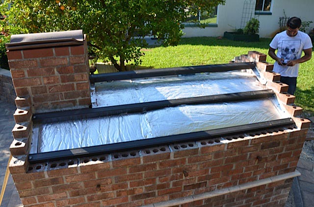 The roof goes on top to cover the oven masonry structure ….. after much layers of insulation and heat resistant materials.