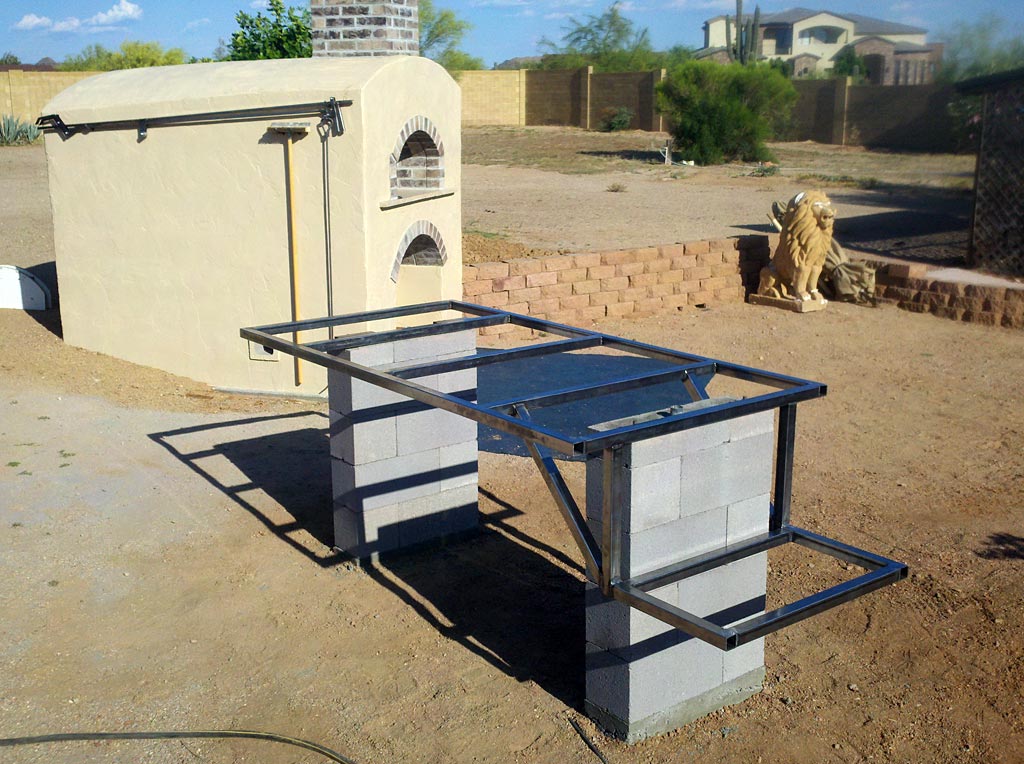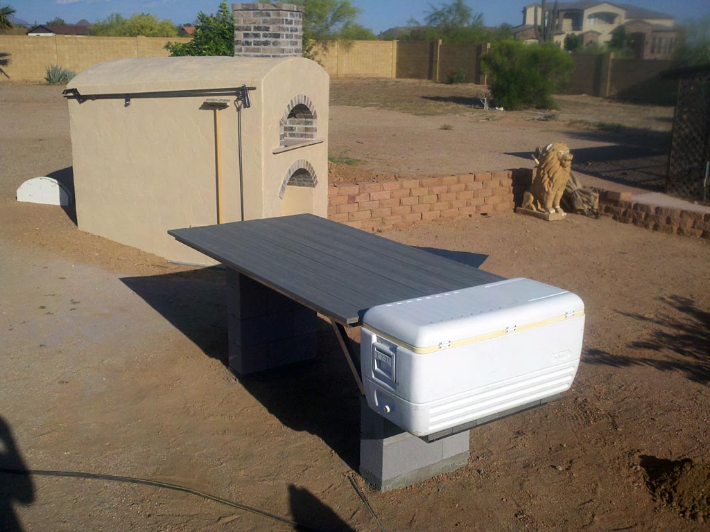 Here are some pictures of my work in progress. Oven first, almost finished with a pizza prep table. Pavers, shade, lighting and who knows what else are still ahead.