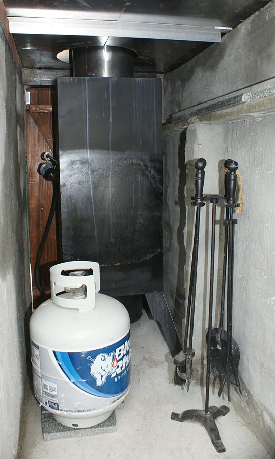 I recovered some nice Redwood for the doors from a deck that was replaced. Pretty much everything was “scrap material” or “leftovers”, except the block, mortar, and the chimney pipe/cap.