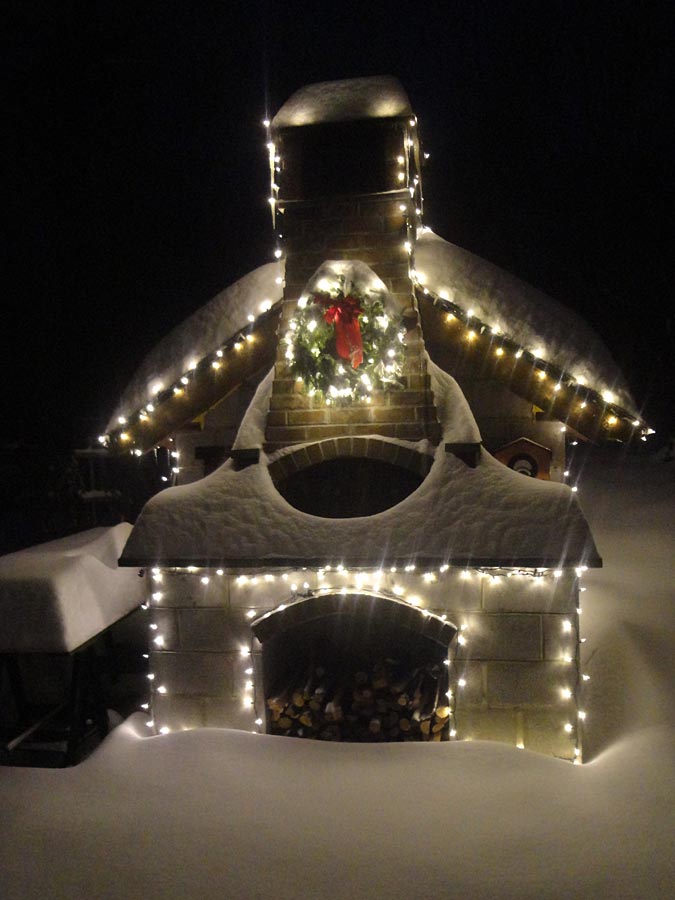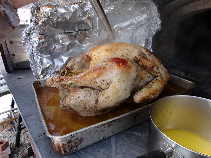 We have been having a great time over the Holidays here with our new oven. Attached are some pictures as well. I did start burning a hotter fire over the whole floor of the oven to get a larger coating of coals. We have tried 3 batches of bread with success. We cooked our Thanksgiving turkey, Christmas Prime Rib, and a whole ham as well as countless pizzas. After cooking pizzas one Saturday night we awoke to 14 inches of snow the next morning while the oven was still almost 400 degrees F inside.