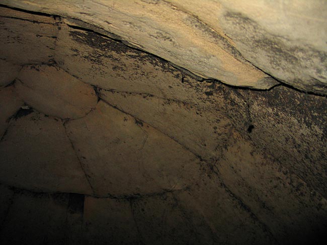 The stone oven is 3m (front) by 2.5m side. Inside, the diameter is 1.8m exact; and height?, still too dusty to climb inside. There is no flue in the oven per see. The fumes/smoke exit by the only opening and exit through a rather large chimney flue located just in front and above the oven.