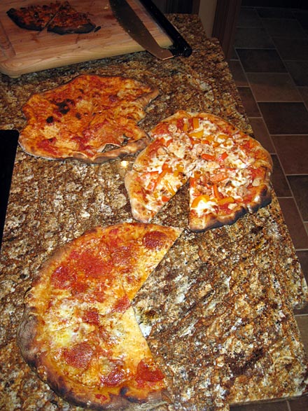 Here are a few pictures of the pizzas cooked in Pompeii oven and some bread.