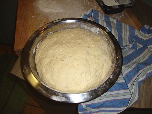 Now Grandma said that she figured someone had sometime measured out the amount of flour for the recipe. Personally I find that it works well at about 7 1/2 cups of flour, depending on the humidity. Too much flour and your bread will become tough.