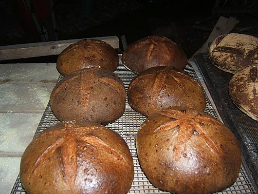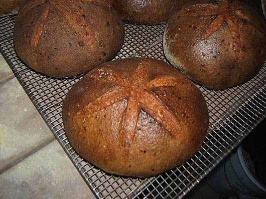 My small loafs bake for 30 to 35 minutes and then they get taken out. The large breads stay inside for 60 minutes or longer up to one hour plus 5 or even 10 minutes extra (up to 70 minutes baking). Basically till I can see that the breads are quite dark, just like the color of David’s breads on this page.