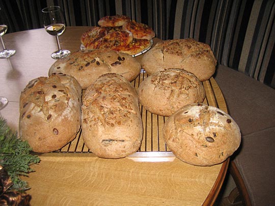 The first big baking day with 3 different sorts of excellent bread, pizzas (they are already in our stomach therefore could not be shown on this one picture any more) and lovely pizza bread.