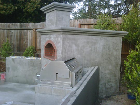 I enjoy cooking and had the desire to build a wood fired brick oven for quite sometime. I also wanted to integrate it with some sort of outdoor kitchen / eating area. Lots of my research and designing ideas from my talented wife led us to your website. Your design, knowledge, and passion for the oven inspired us to move forward with the project. So I started right away when I received your cd. Working on it late afternoons and some weekends resulted to completing the whole project. Above the oven was modified with a flat surface top, sloped backward a bit, to let the rain run off.
