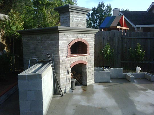I used plain cement bricks knowing I was going to stucco the exterior to match our house. While the oven was being built, we practiced making dough and pizzas in our kitchen oven with the aid of a pizza stone. That’s a project by itself, but was able to achieve great tasting pies.