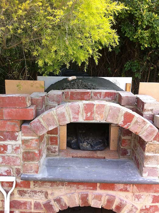 Regarding the floor; if you could would be better if the floor, at least in the area in surface around the center where food/pizza is placed on, was done out of firebricks. I reckon if laying the floor bricks flat, if you could place a few of these red bricks (all can be like really damaged seconds) under the laying flat firebricks. That way you create more volume in the dense floor. This way the floor absorbs and retain more of the heat. Just a thought if you wanted more variety to cook or bake.