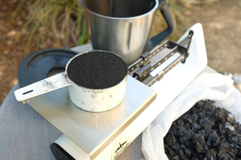 That is exactly how heavy this raw, in finely pulverised state, wood charcoal powder is per its volume quantity. Charcoal powder can be used in various practical applications; e.g. as pigment for arts, in horticulture for turning soils into a higher quality carbon rich soil, or even in medicine. Your nutritionist can suggest it as the dietary supplement for digestive, gastric issues.